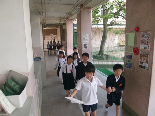 張り切った表情の2年生が、1年生と手をつないで校内を案内してきました。