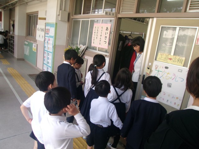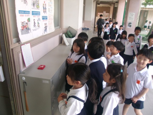2年生は、1年生に「順番に押すんやで~」と優しく声をかけていました。