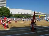 写真上から 紅白応援合戦(午後) 琉球演舞 エイサー(4年) ひろって、なげて、...