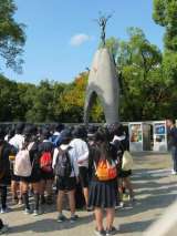 写真上 「原爆の子の像」の前で平和の集いを行いました。 写真中 平和記念公園、慰...