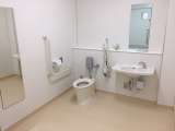多目的トイレは広く、どなたでもご利用いただけます。学校に来校の際には、是非ご利...