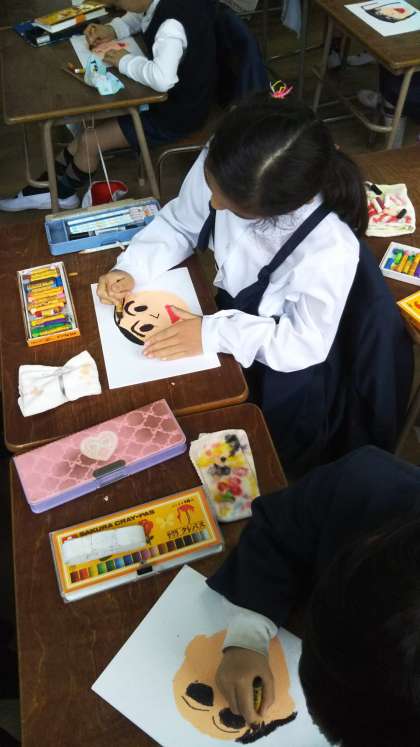 「じふんのかおをかこう」とパスを使って顔を描きました。何となく本人に似た生き生きした顔が仕上がっていきます。