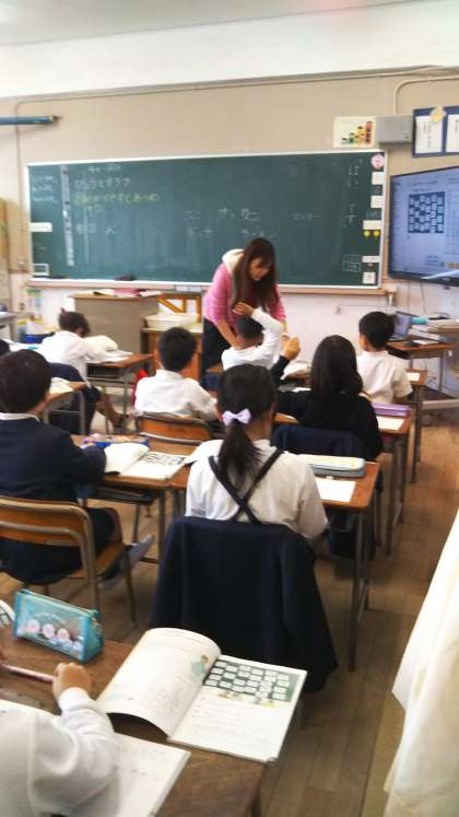 「ひょうとグラフ」の学習で、ばらばらの絵ガードを同じ種類ごとに数を数えながら分類しています。
