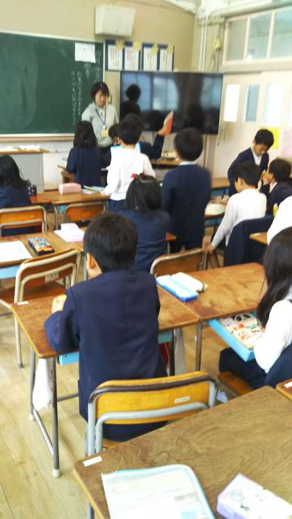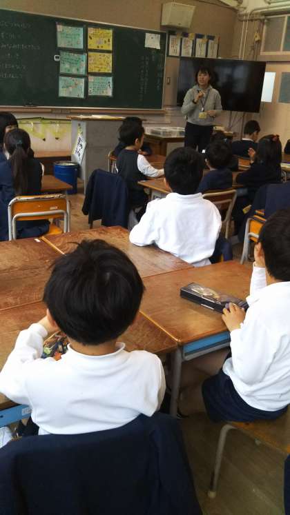 1年生を案内して学校探険をします。その準備てして「ほけんしつ」や「としょしつ」など、ドアにはる掲示物を作ります。