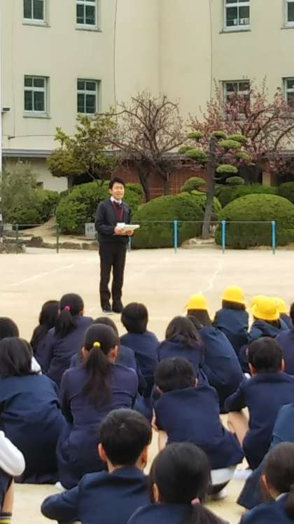 2時限めに火災の避難訓練を行いました。理科室から出火した想定で全校児童が運動場に避難しました。全員が揃って点呼が終了するまで4分でした。教頭先生から「今年度、初めての避難訓練でしたが、どの学年も担任の指示を聞いて素早く行動できました。」と誉められました。それから避難する時の大切な「おはしもて」のお話がありました。『「お」押さない、「は」走らない、「し」しゃべらない、「も」もどらない、「て」低学年からと言う意味で、実際に火災が起こったらしっかり守って避難しましょう』と伝えられました。