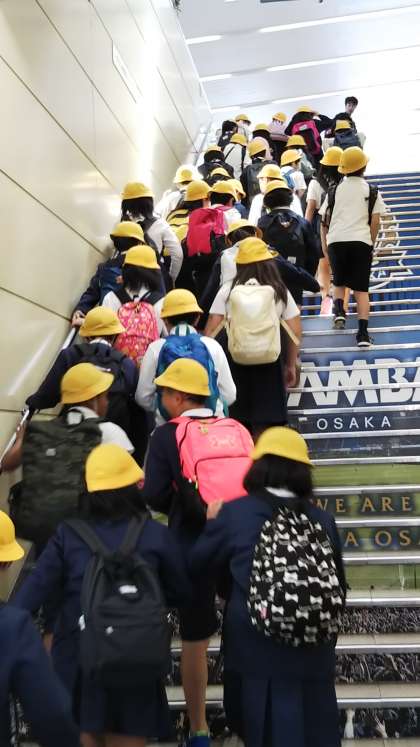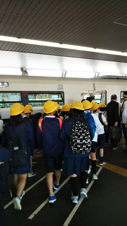 快晴の朝、気持ち良く学校を出発しました。千里中央駅で乗り換え、モノレールで万博記念公園駅まで行きます。初めて乗る子どもたちが殆んどでワクワクです。