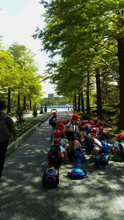 長居公園に到着しました。緑がとてもきれいです。お茶、トイレ休憩をしながら進みます。