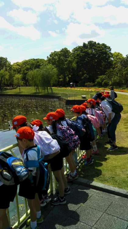 「だんごむし!」「こいがいっぱい!」「(枯れた蓮の葉)フラミンゴみたい。」「アカミミガメ、スッポンもおる」おしゃべりが止まりません。