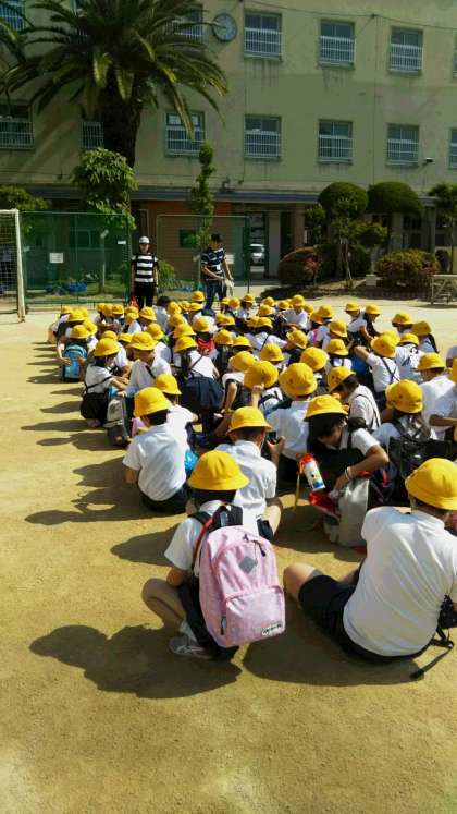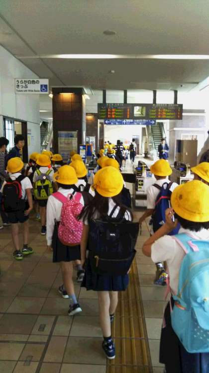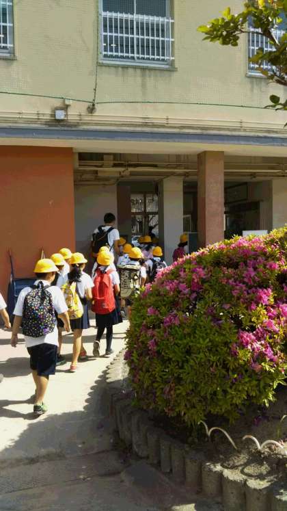 今日も、とてもいいお天気です。3年生、元気に出発です。
