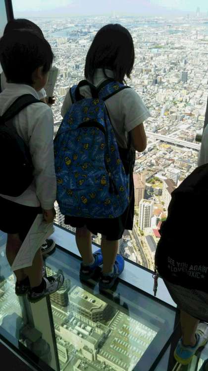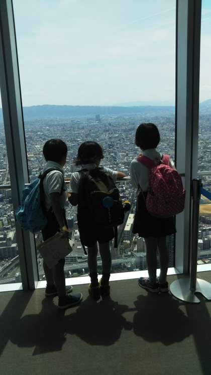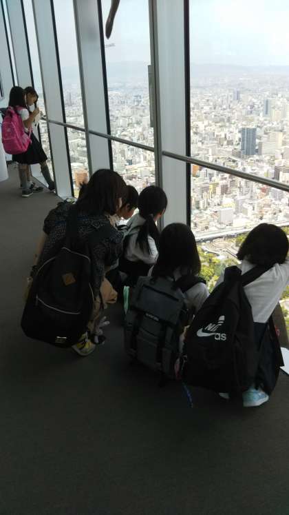 「海が見えた。海遊館も。」「動物園や。」「大阪城、どこかわからん」等々、班で仲良く見学しました。