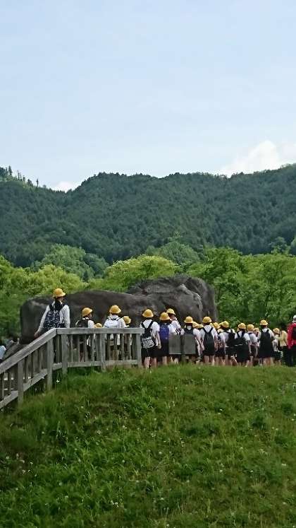 お弁当を食べた後は、石舞台古墳の前で記念撮影をしました。最後に石舞台古墳の下に潜り見学をし、飛鳥をあとにしました。