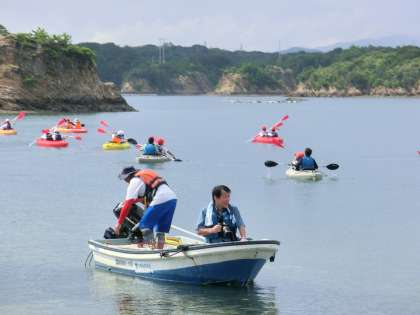 「みぎ」「ひだり」と声をだして、シーカヤックを操っていました。