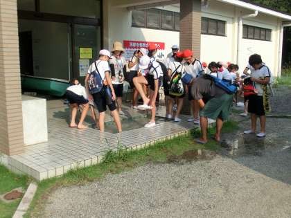 到着後、足を洗って、宿舎へ