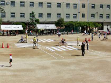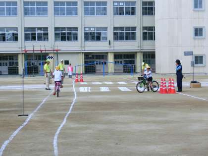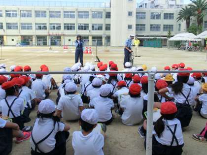 3年生は1・2限は交通安全指導をしました。住吉警察のお巡りさんから自転車の乗り方について、学びました。