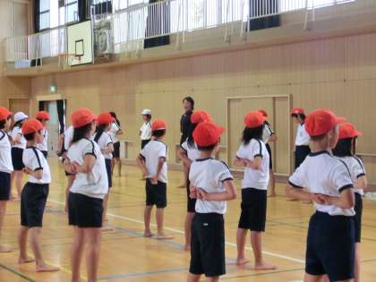 本日は、講堂で、2限目は4年生、3限目は1年生、4限目は3年生、5限目6年生、6限目は5年生が練習をしました。どんな団体演技を発表してくれるのか?楽しみです。