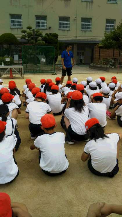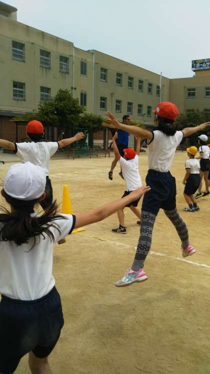 5.6年生が、2時間めと3時間めにトップアスリートによる「夢・授業」を行いました。今年は、世界陸上に出場した、荒川大輔さんにお越しいただき、短距離走のコツ等を教えていただきました。ジャンプ力と走る力強さに「オー!」という声がもれました。