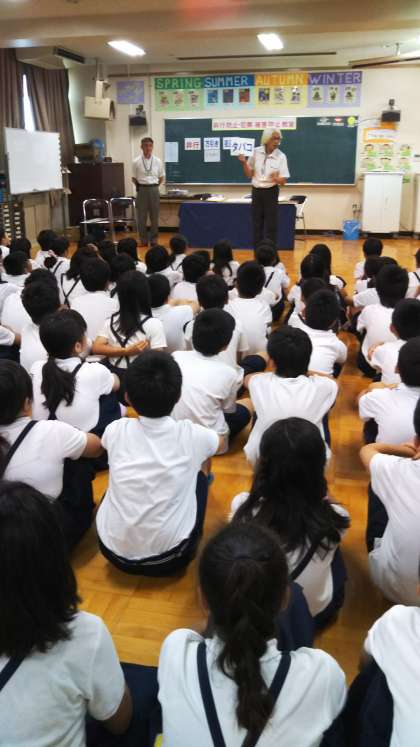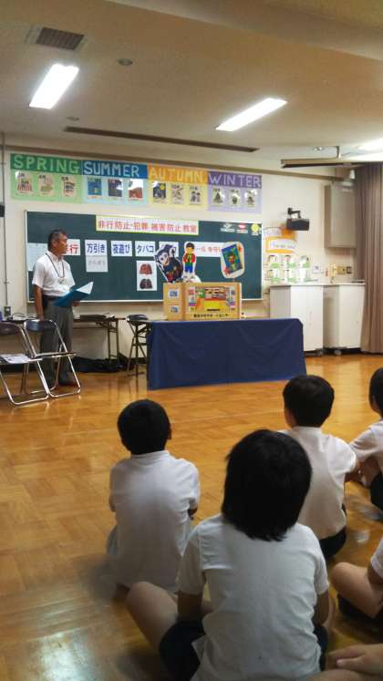 難波少年サポートセンターの方に来ていただき、夏休みを前に、5年生を対象として非行防止教室がありました。万引きは非行の入り口であることやネットには顔を載せないことなど大事な話をたくさん聞きました。実行できる強い意思を持ちましょう。