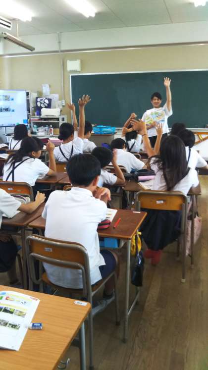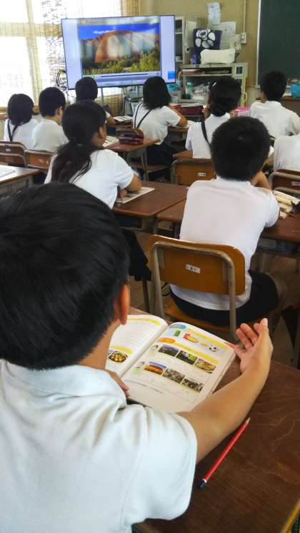 「Let's go to ○○!」さて、どこの国へ行きましょう。聞き取った言葉を発表したり、中国やオーストラリアなどの国の様子をデジタル教科書で見たりしました。