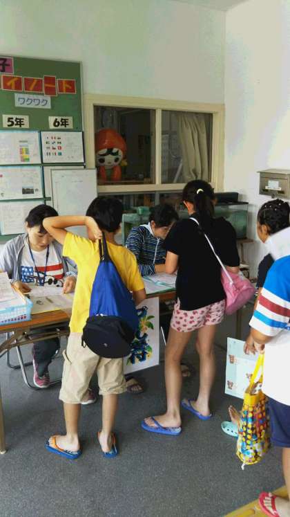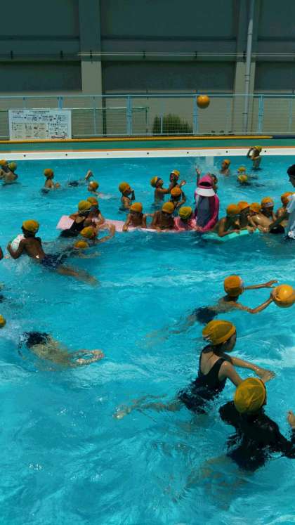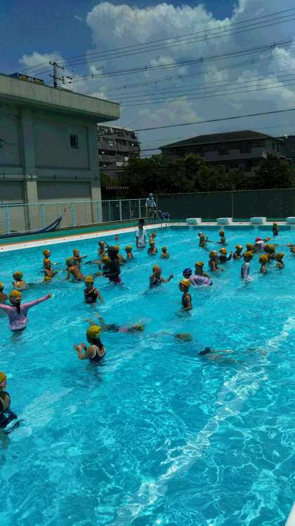 猛暑が続いています。プール開放にたくさんの子どもたちが来ています。水の中は、とても気持ちよさそうです。明日が最終日となります。皆さん、待ってますよ。