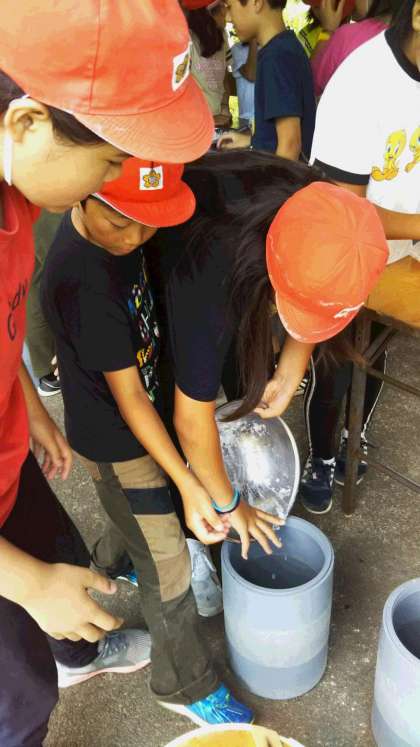材料をしっかりかき混ぜて、塩氷を入れた容器で冷やしながら転がします。ミリクたっぷりのおいしいアイスクリームができました。