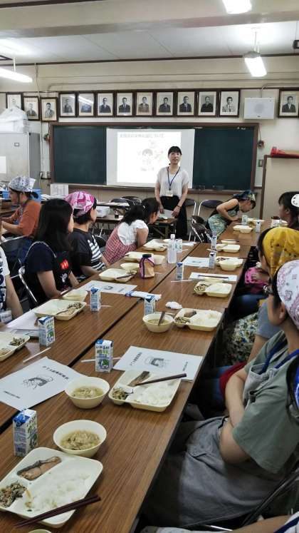PTAの保健・給食委員会主催の給食試食会が開かれ、約30名の参加者がありました。献立は「さけのしょうゆ風味焼き」「五目汁」「高野どうふのいり煮」で、足羽栄養教諭から学校給食のお話を聞きながら楽しく試食しました。給食1食で1日の必要な栄養の3分の1が取れること、牛乳1本も合わせて、1日に必要なカルシウムの2分の1が取れること、給食には地場の野菜が使われていること、出汁はこんぶと削りぶしで取っていることなどのお話がありました。また学校で学習や運動をするため、朝ご飯をしっかり食べることが大切というお話もありました。