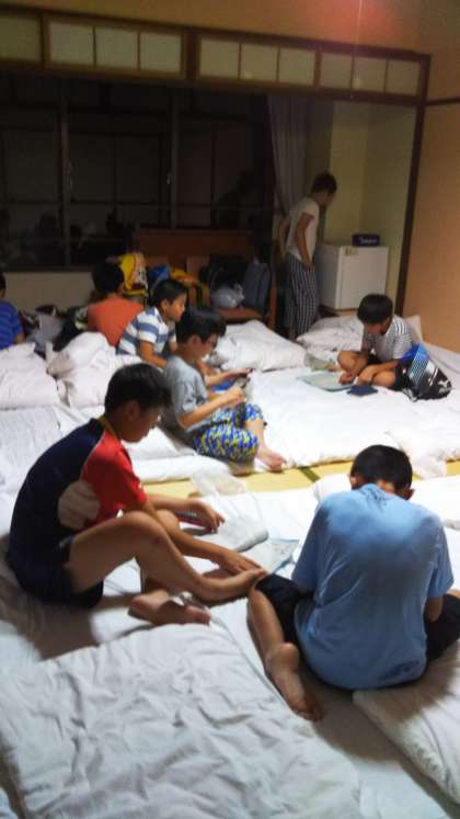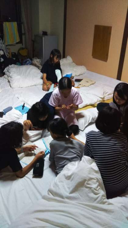 しおりに今日1日のふりかえりをして、記入しました。「体の調子はよかったですか?」「みんなと協力しあいましたか?」などなど…。