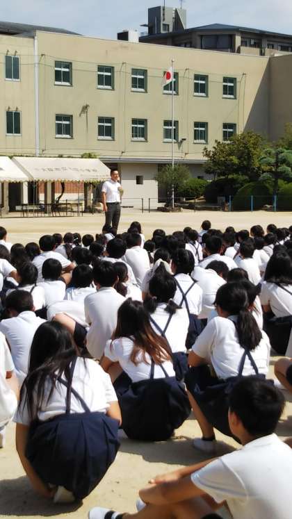 今日は、住吉警察の協力のもと、不審者侵入を想定した避難訓練を行いました。放送の合図で不審者が学校に侵入したことを知り、担任の先生たちの指示に従って、まず教室で待機しました。不審者が確保された合図で、運動場に避難しました。訓練に参加された住吉警察の方から、大阪でも事件が起こっていること、いつ不審者が侵入するかわからないので、先生方の話をしっかり聞いて行動するようにというお話を聞きました。