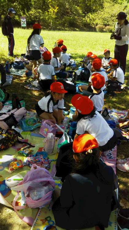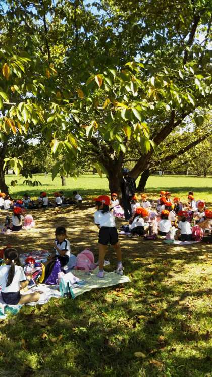 心尽しのお弁当、ありがとうございます。「キャー、虫!」木陰で賑やかにいただきました。
