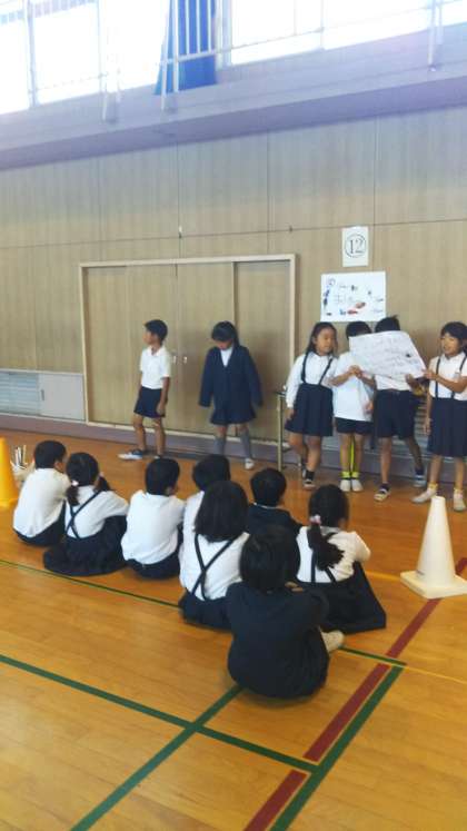 2年生は、遊び方の説明を大きな声で言いました。1年生は、しっかり聞こうとしていました。コーナー移動の合図は先生がしましたが、それ以外は子どもたちだけで活動しました。
