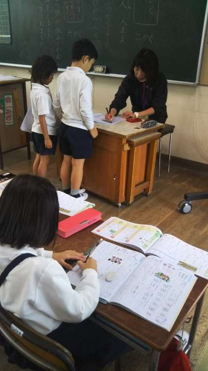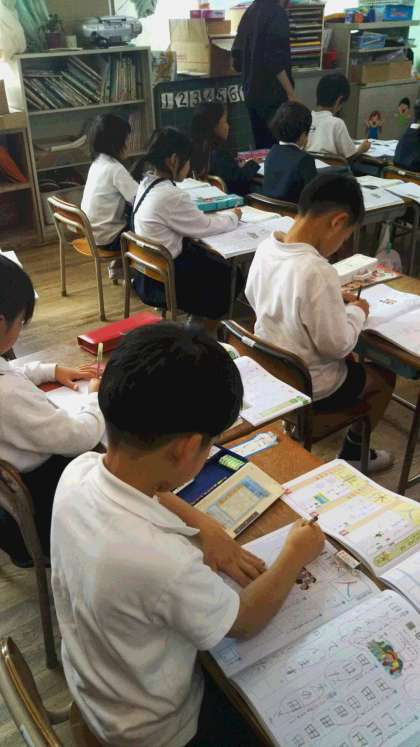 1学期は、ひらがなやカタカナを習っていた1年生が漢字を学習しています。言葉さがしや文作りもがんばりました。