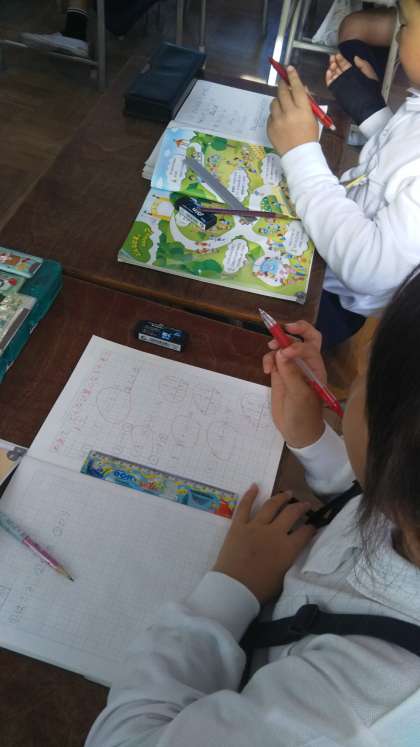 「どんな計算になるのかな?」絵に表されたいろいろな場面の問題を四則計算のどれを使ってどのように解けばいいのかを考えました。