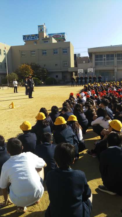 避難訓練後、苅田地域活動協議会会長の仲本さんや消防署の方からお話をしていただきました。自分や周りの人の命守るための話を子どもたちは真剣に聞いていました。