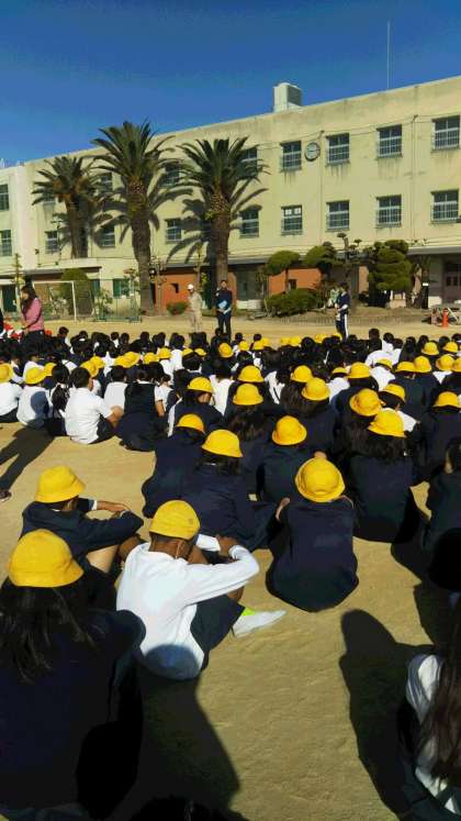 9時の一斉放送をスタートとして、避難訓練、体験訓練、防災講話等を行いました。