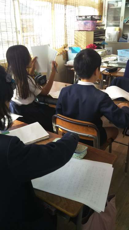 ある人物が不思議な世界へ行ってもどってくるという物語をつくります。構成を考えて、作家さながらに何枚も書き進めている子どもたちもいます。