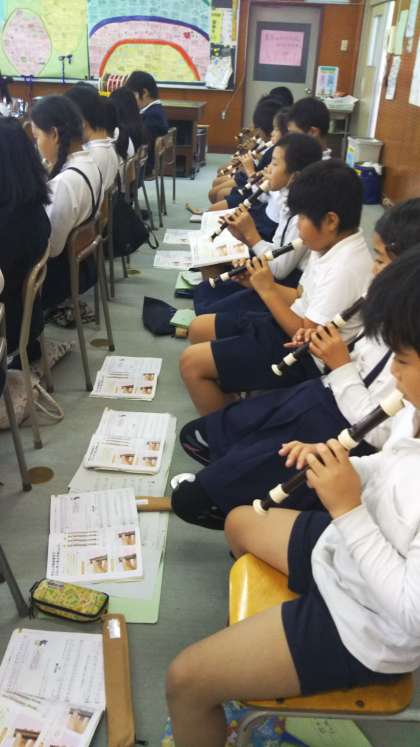 サミングをおぼえてリコーダーで高いミファソを吹きました。親指でうらあなを少し開けます。一生懸命、練習をしました。