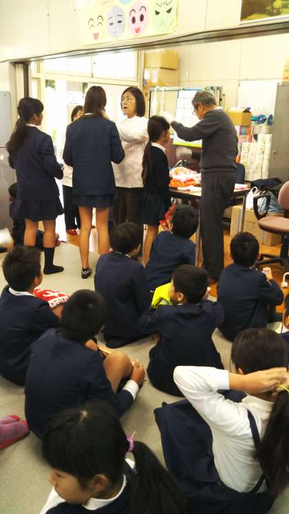 4年生では、毎年丈夫な歯を作るためにフッ化物塗布をします。虫歯の原因、歯こうやおやつの食べ方、歯みがきの方法について、歯科衛生士さんのお話をしっかり聞いて、塗布しました。
