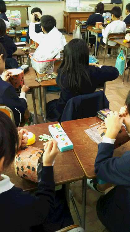 ちぎったら紙を丁寧に貼りました。さて何ができるでしょうか?作品展をお楽しみに。
