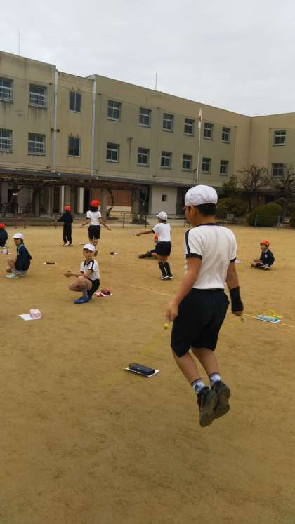 縄跳びカードを使って、いろいろな跳び方に挑戦しました。楽しく体を動かすことで体力をつけていきます。