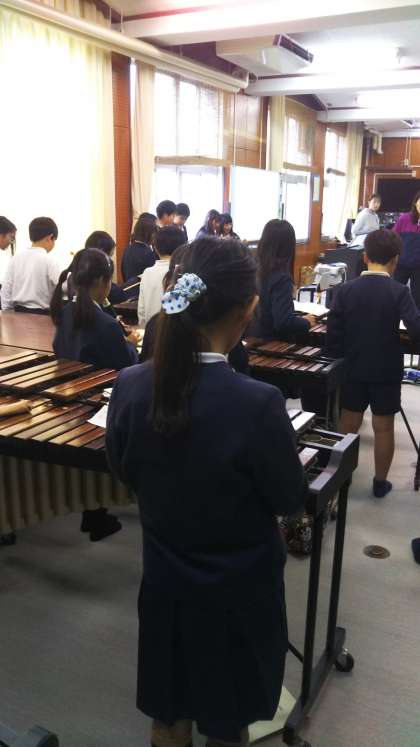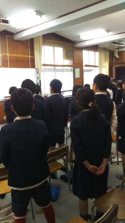「もみじ」の2部合唱と「茶色の小びん」の合奏をしました。担任の先生にも観に来てもらって子どもたちはにこにこ顔です。