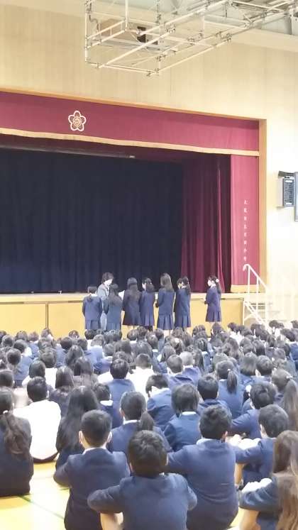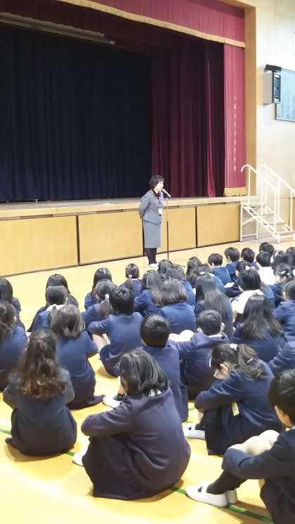 冬休みが終わり、今日から3学期が始まり、今朝、講堂で始業式が行われました。まず冬休みに小学校体育連盟のバトミントン交歓会に参加した児童たちに校長先生から表彰状が手渡され、頑張ったことを褒め称えられました。そして、校長先生からは、みんなにはどんな冬休みを過ごしたのかを尋ねられ、3学期は自分の目標を立てて毎日こつこつと取り組んでほしいとのお話がありました。また生活指導担当の先生からは、生活強調週間が始まること、「早寝、早起き、朝ごはん」を意識して生活し、丈夫な身体を作り、学習や運動に頑張ってほしいというお話がありました。最後に校歌と大阪市歌を全校児童で歌いました。