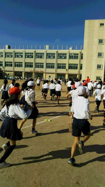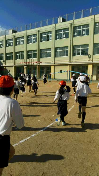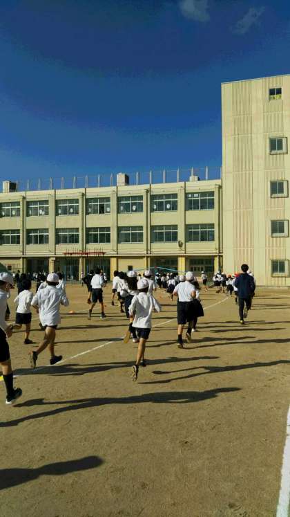 今日は、3、4年生の持久走です。自分のペースで気持ちよく走りました。