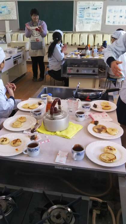 「感謝の気持ちを表そう」の学習で「ホットック」を作りました。紅茶もいれて、楽しく会食できました。家族の皆さんと一緒に作れるといいですね。