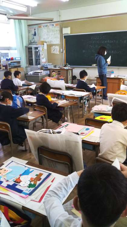 教室では、持って帰る物を整理したり、お手紙の話を聞いたりしました。