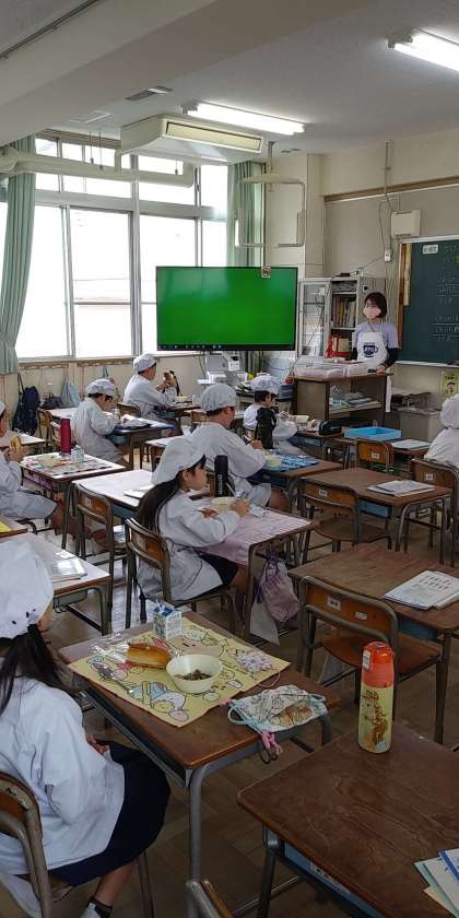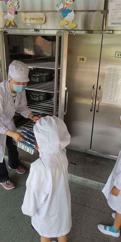 本日より給食が再開しました。当面パンと牛乳と副食1品の給食になります。