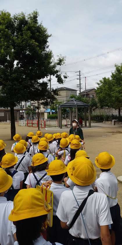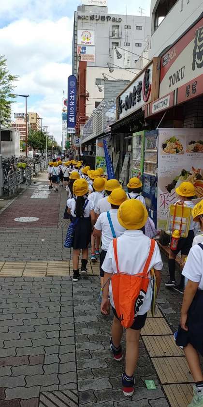 今週雨がやんだわずかな時間に、2年生2組と3組の町たんけんを行いました。ふだんの生活で見慣れた場所ではありますが、地図を見て現在地を確認しながらまわることで、たくさんの新たな発見をしました。