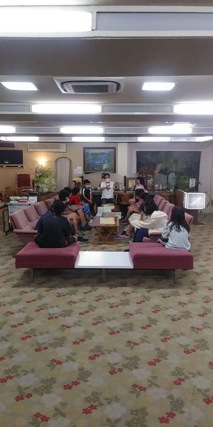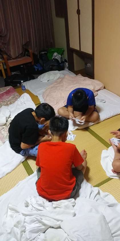 それぞれの部屋で楽しく過ごした後反省会を行いました。室長会議では今日良かったことと課題を出しあい、有意義な会議になりました。この後22:00就寝です。