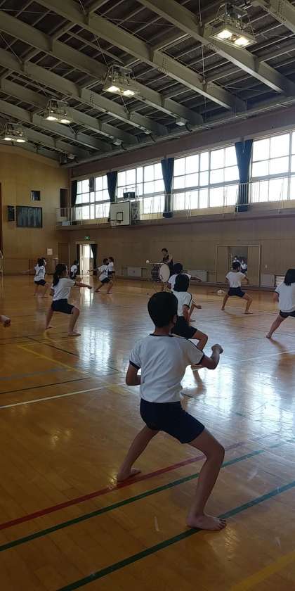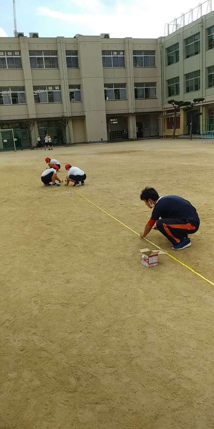 有志応援団(5・6年)の練習が始まりました。先週教職員で運動場ににがりをまき、ラインテープのはりかえをしました。今週はテントを準備し、運動委員会でラインテープの最終確認を行いました。