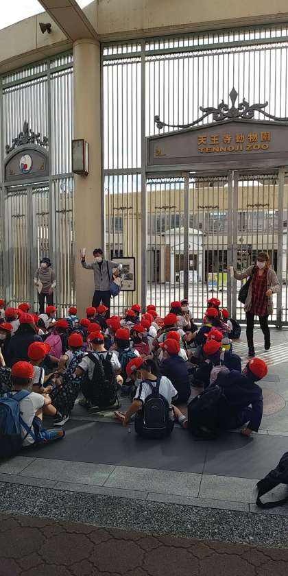 予定通り出発し、無事天王寺動物園に到着しました。雨が降っていないので、11:20までグループ活動となりました。