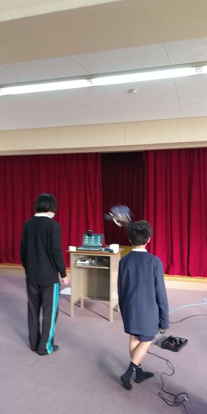 児童集会(カーテンの間を通り抜けたのはなんでしょう)