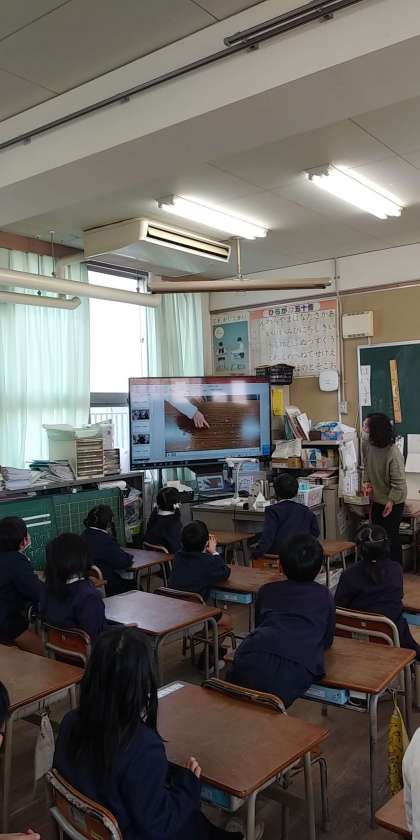 毎年地域・PTAの方に学校に来ていただいていますが、今年度は事前に遊び方の動画を撮影していただき、各学級で視聴してから後日実際に遊んでみるという方法をとりました。手本の映像がどれもとても上手なので、みんなびっくりしていました。